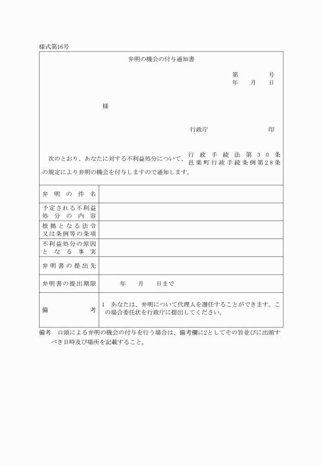 第13条 法第22条第2項本文又は条例第22条第2項本文の規定による通知は、聴聞続行通知書(様式第11号)により行うものとする。
