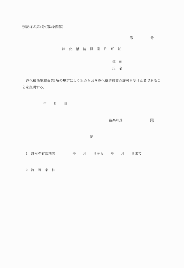○邑楽町浄化槽の清掃業に関する条例施行規則